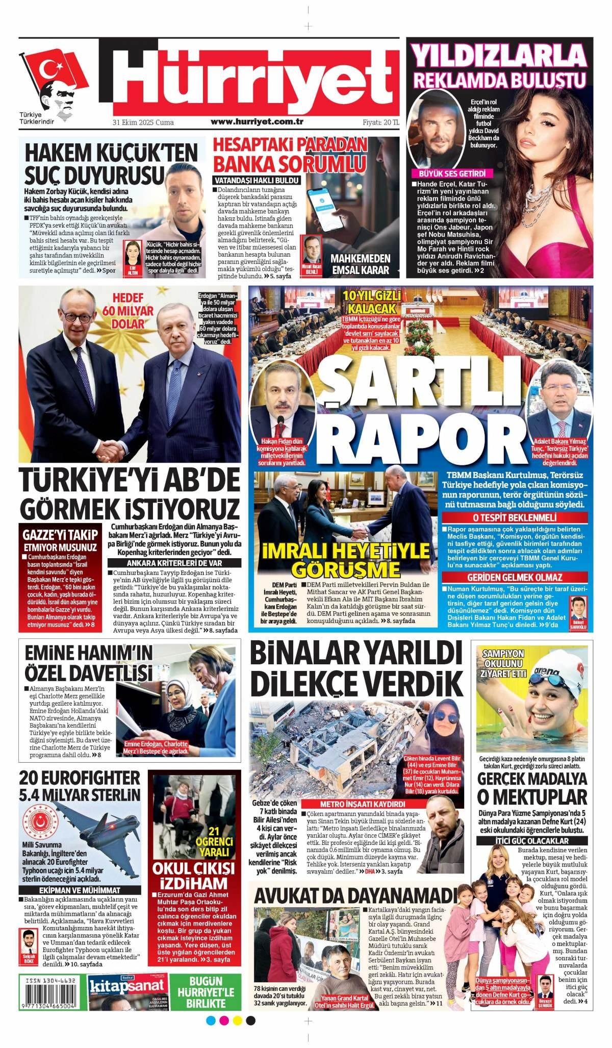 Hürriyet Gazetesi 31 Ekim 2025, Cuma Günü Manşeti