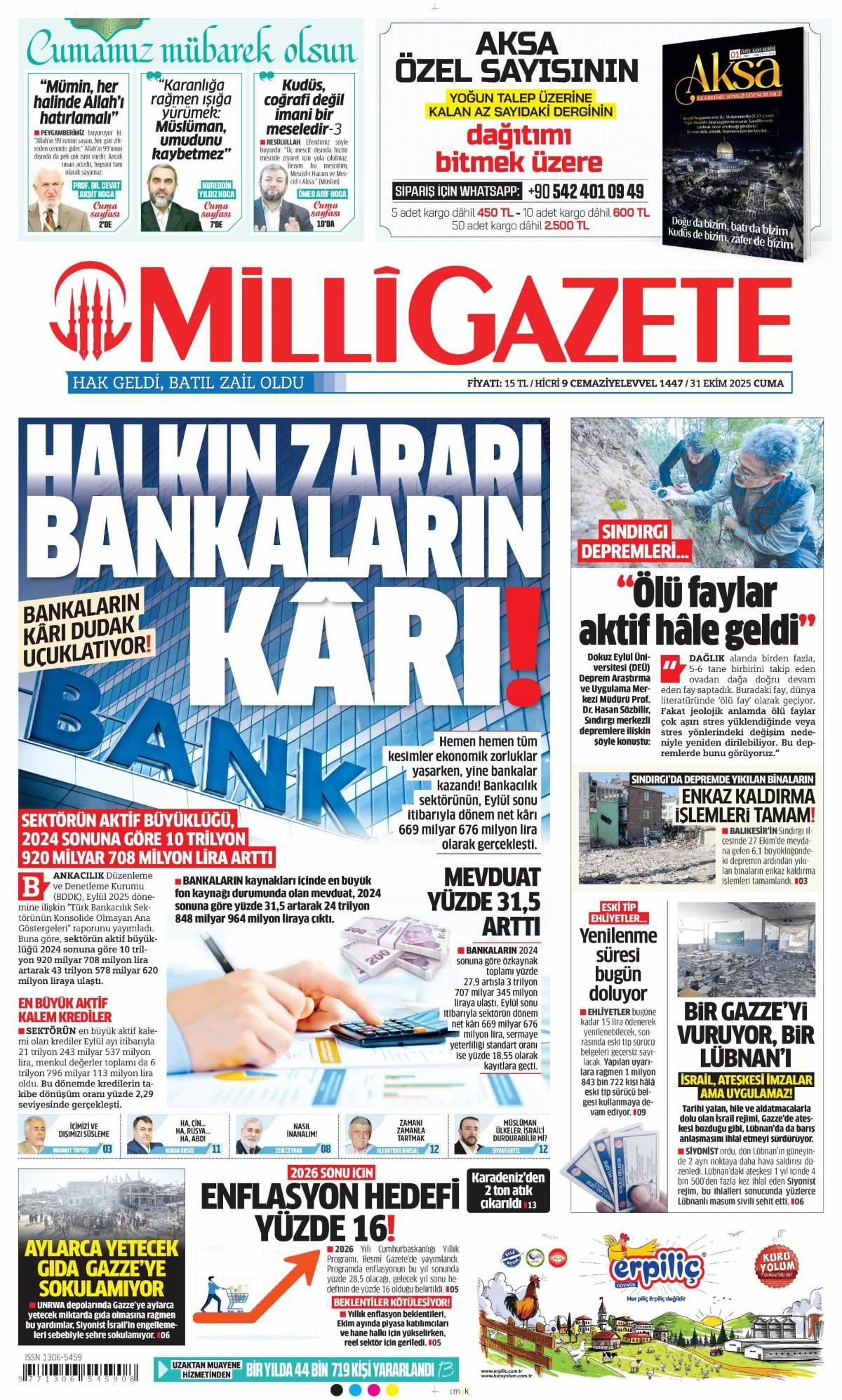 Milli Gazetesi 31 Ekim 2025, Cuma Günü Manşeti