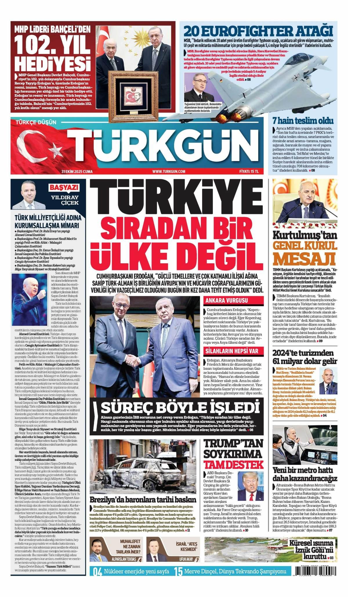 Türkgün Gazetesi 31 Ekim 2025, Cuma Günü Manşeti